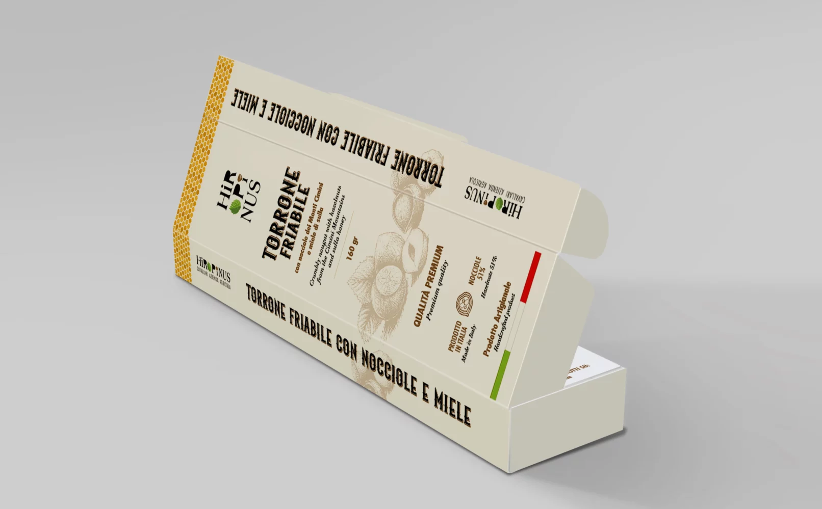 Questo approccio ci ha permesso di realizzare una serie di packaging coordinati che consolidano l’identità di Hirpinus, posizionando l’azienda come leader nel settore delle prelibatezze a base di nocciole.