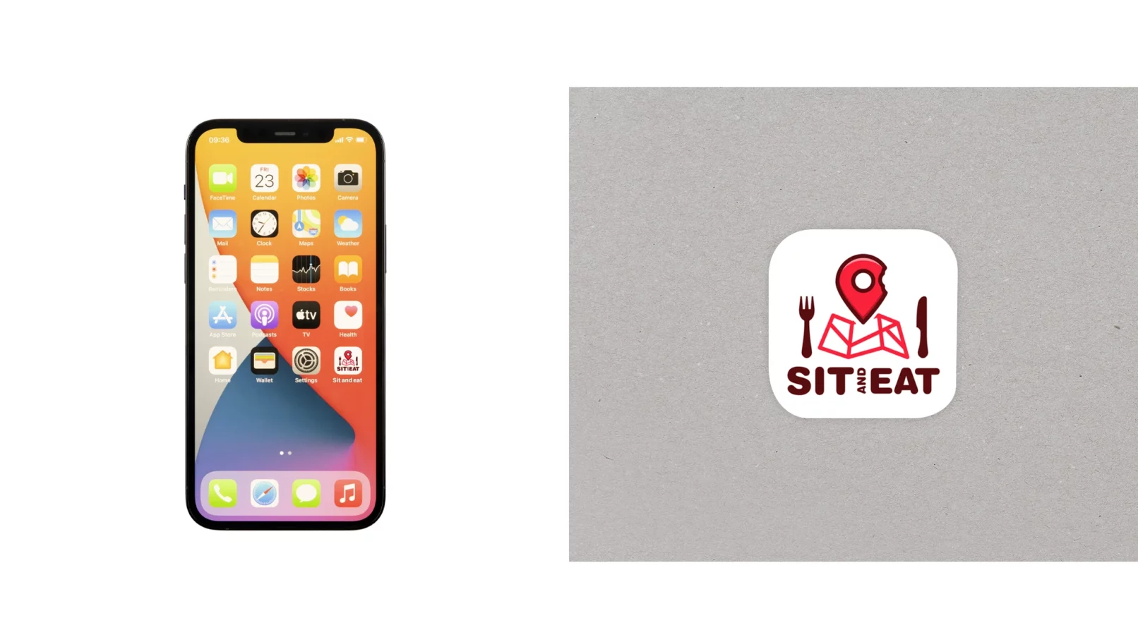 Il logo di “Sit and Eat” è stato progettato per essere fresco e accattivante, perfetto per l’ambito digital e social. Questo design moderno e distintivo combina elementi visivi che richiamano immediatamente il concetto di cibo e localizzazione, catturando immediatamente l’attenzione e comunica chiaramente il concetto dell’applicazione.